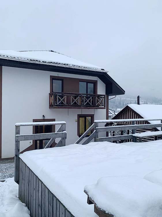 Триповерховий будинок на 18-22 місць. На першому поверсі (окремий вхід знадвору) — кухня (газова плита, холодильник, мікрохвильова піч,